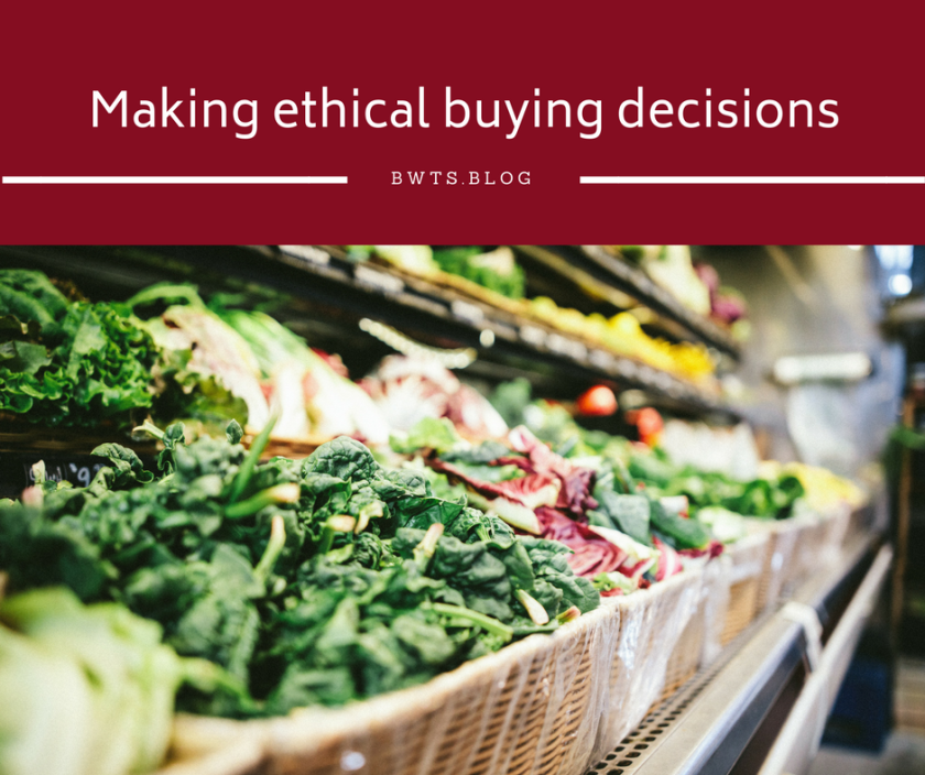 With almost on-demand access to a world of goods and services, it’s a good idea to be conscious about what we’re buying. Just because something’s available doesn’t mean we should buy it. Consumption involves ethical choices because it impacts a whole chain of people, from the origins of that chocolate bar or can of tuna to the time it arrives in your hands. How were the people who grew those cacao beans treated? Were the tuna caught in a huge net that didn’t discriminate if it also caught other kinds of sea creatures?